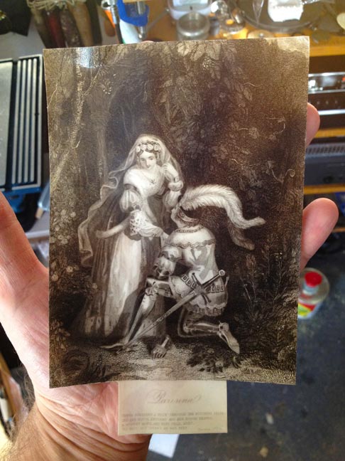A stunning early steel engraving is chosen to occupy the niche I ground in the clay pipe.